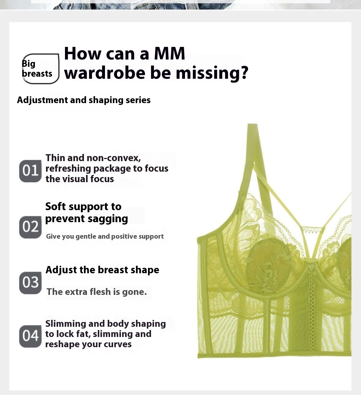 French Lace Fishbone Underwear Accessory Breast Push Up Anti-sagging