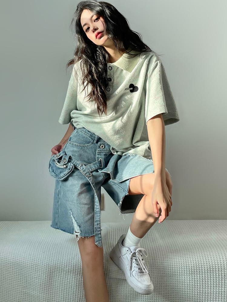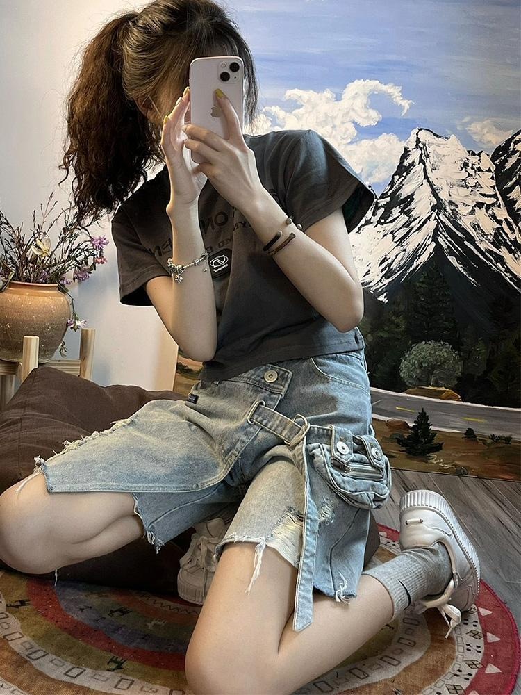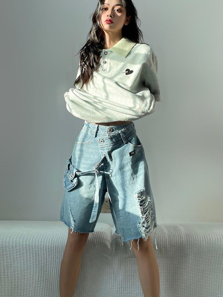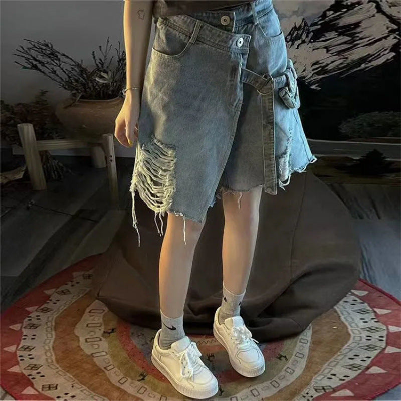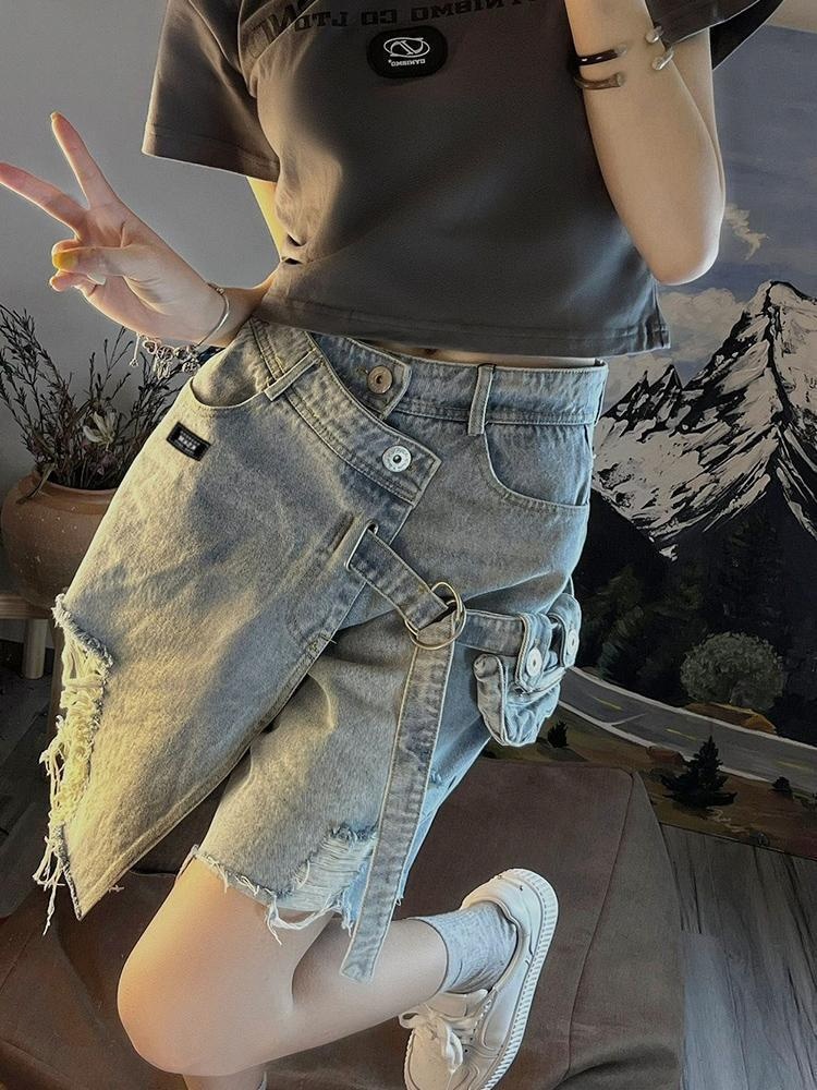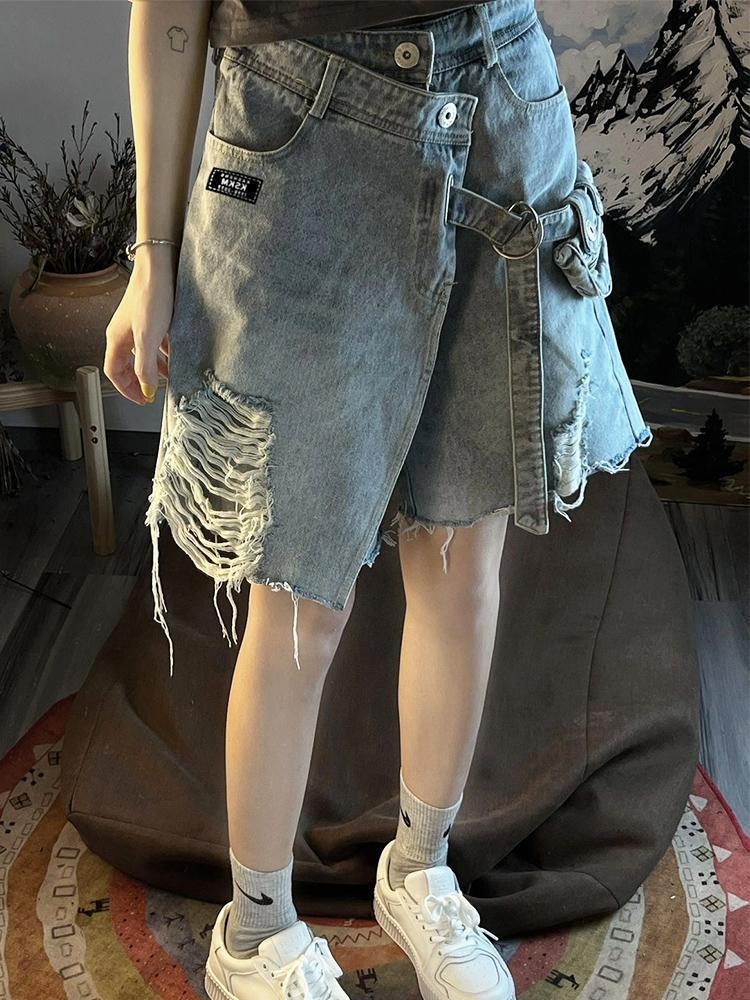 Irregular Ripped Denim American High Street Hot Girl Shorts