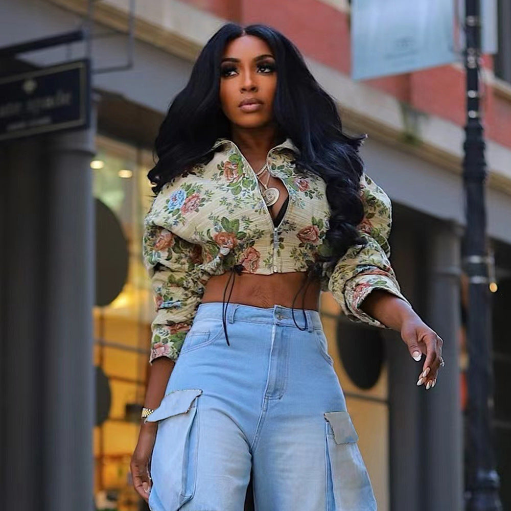 Women's Lace-up Yarn-dyed Jacquard Long-sleeved Jacket